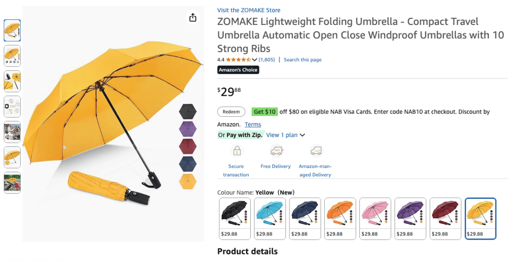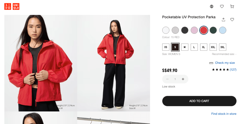 A UV protection umbrella not only protects you from the rain but also from the sun’s rays too. I bought mine from Amazon AU in yellow back when I still lived in Brisbane, but I think there are a lot of similar options in Singapore. It is quite wide but also portable. The umbrella also opens in just a click, which makes it easy to use as compared to ones that require us to slide it to the edge.