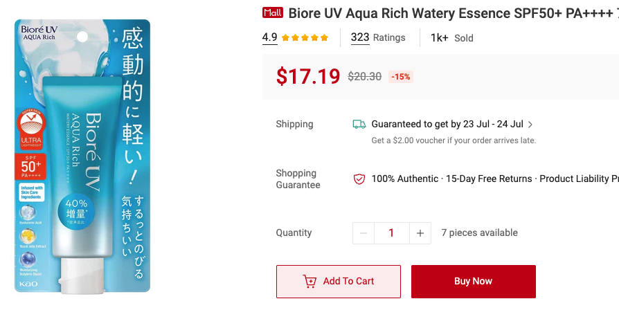 My favourite sunscreen that I have been using since 2016 until now is Biore UV Watery Essence SPF 50+ PA++++.