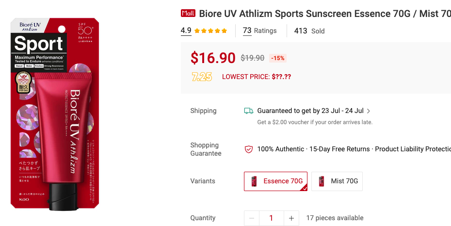 The blue bottle one is more suitable for normal daily wear, like when youโre going to work or school. For more intense outdoor activities, I used and recommend its sports counterpart, Biore UV Athlizm Protect Essence SPF 50+ PA++++. It is slightly thicker in consistency in my opinion, but still comfortable and non-greasy on my oily, acne-prone skin.