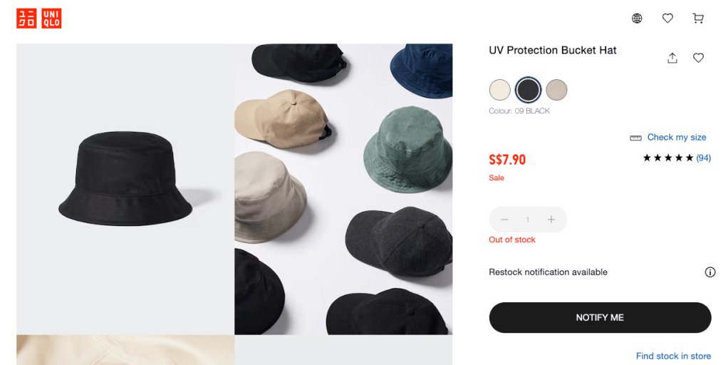A wide-brim hat is the one many recommend, as its shape can protect you from all angles, including the back of the neck. As much as I love using it, sometimes it can look โtoo muchโ on me ๐ , so a more casual alternative is to wear a bucket hat. Mine is (again) a bucket hat from UNIQLO. Itโs in black because the other option was beige, and it looks sad and weird when I put it on.
